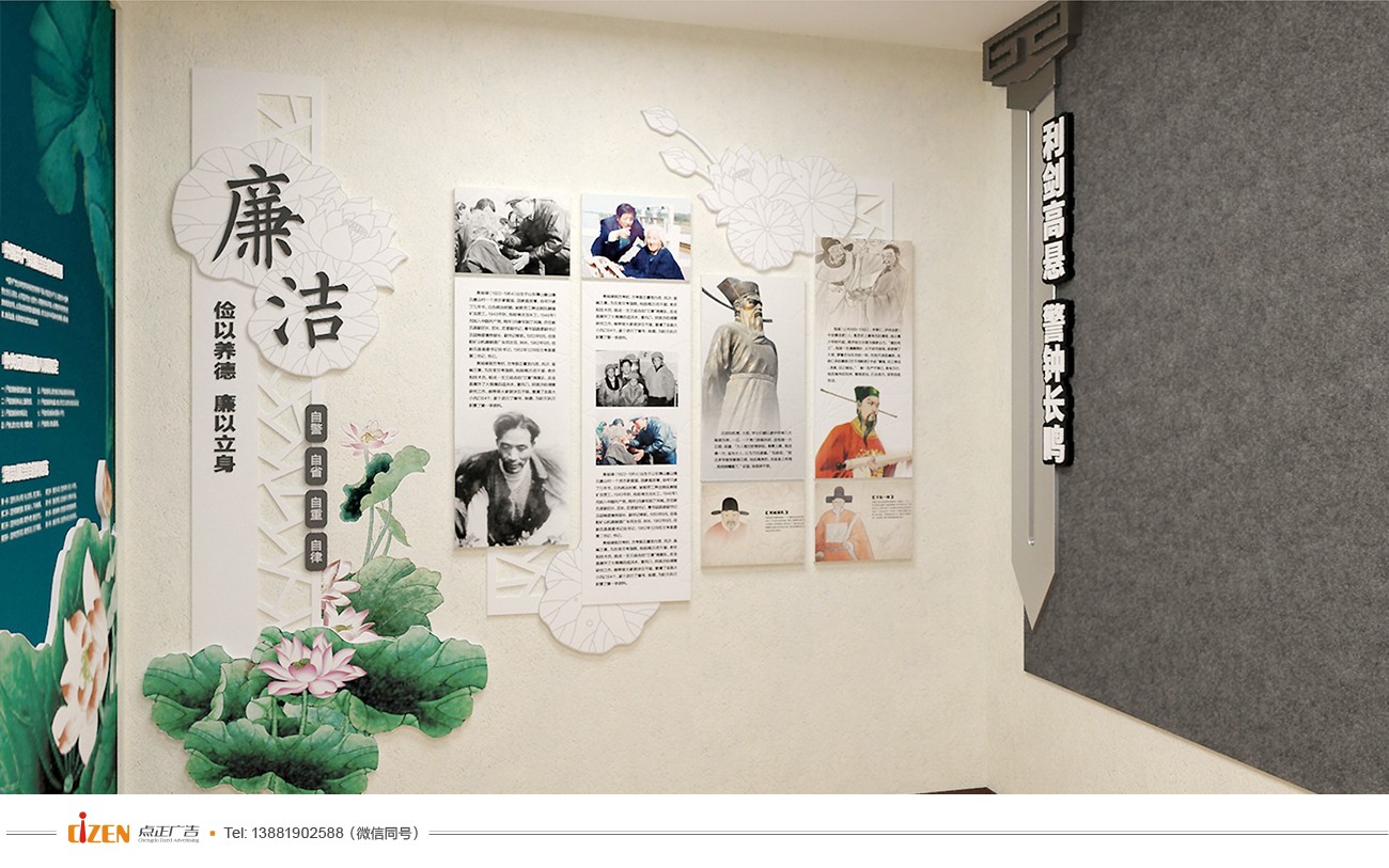 2、通过文化长廊展示等形式可紧密结合党的十九大精神,充分挖掘我国古现代廉吏故事,概括讲述了红色革命往事,详细展示了廉洁作风、家风建设的重要意义,图文并茂,语言通俗易懂,让人们在知识氛围亲润中得到廉政文化的熏陶,积极发挥着“倡廉于有形,润物于无声”的效果。目前该廉政展板已成为各级市政广场一道亮丽的风景。